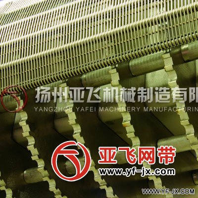 用于自動(dòng)化地板涂裝生產(chǎn)線包括地板烘干回火線、流平機(jī)、輥涂線,使用鏈條型網(wǎng)帶,網(wǎng)帶使用穿絲繞絲編織,兩邊焊接不銹鋼鏈條,網(wǎng)帶中間添加不銹鋼隔套,可以減少摩擦力防止刮蹭,更益于地板的生產(chǎn)和品質(zhì)。